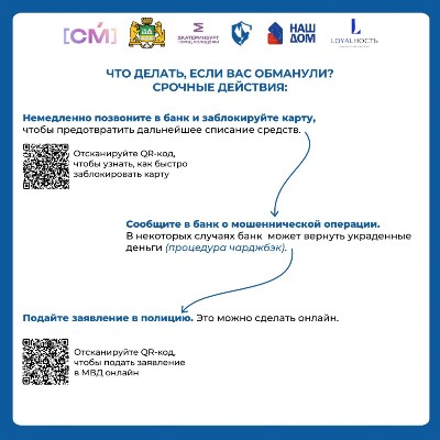 Если же Вы или Ваши близкие стали жертвами мошенников, или Вы подозреваете, что в отношении Вас планируются противоправные действия - незамедлительно обратитесь в полицию!
