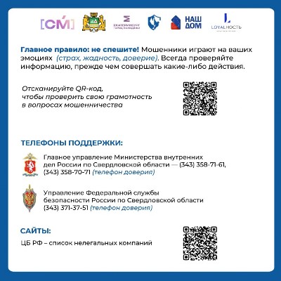 Пресс-служба УФСБ России по Свердловской области акцентирует внимание на том, что силовики никогда не запрашивают информацию о состоянии банковских счетов, не требуют проводить операции по переводу денег, не просят назвать номер карты и цифры на обратной стороне, и тем более никогда не задействуют граждан в расследовании уголовных дел по телефону.